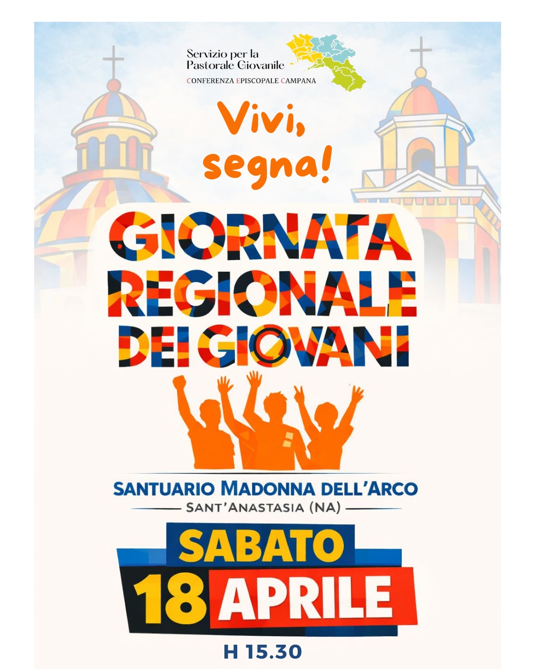La Pastorale Giovanile della Campania annuncia la nuova edizione della Giornata Regionale dei Giovani, in programma sabato 18 aprile 2026 presso il Santuario della Madonna dell’Arco a Sant’Anastasia (NA). L’iniziativa, dal titolo “Vivi, Segna!”, offrirà ai giovani della regione un’occasione preziosa per incontrarsi, condividere esperienze, crescere nella fede e riscoprire la bellezza di lasciare un segno autentico nella propria vita e nel mondo, in continuità con il percorso avviato durante il Meeting di ottobre.