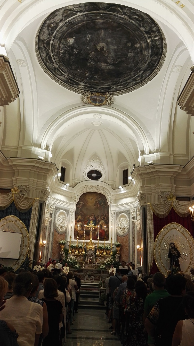 Mercoledì scorso 30 agosto Padre Pietro ha riaperto il grande portone della Chiesa appena restaurata dalla ditta Stilla che conserva la storica statua di San Giovan Giuseppe della Croce. Alle 19:30 è partito il corteo religioso dalla Chiesa Cattedrale che ha visto in processione anche la statua del Santo Patrono dell’Isola. Dopo una breve preghiera davanti la facciata della Chiesa Nuova, Mons. Vescovo ha varcato la soglia del nuovo Tempio e fatto entrare il clero e il popolo di Dio. San Giovan Giuseppe è tornato nel suo Santuario, a casa sua ed è stato posizionato sulla destra dell’altare maggiore per poter essere venerato in questi giorni di festa a Lui dedicati. Il vescovo ha quindi benedetto con l’acqua Santa tutta la Chiesa e i fedeli presenti.