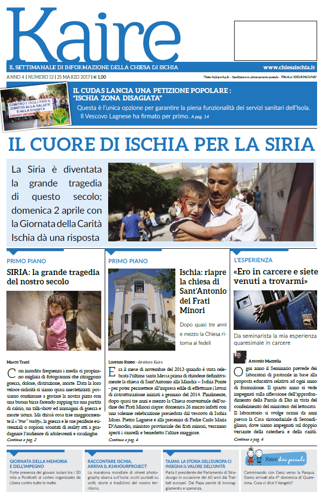 Kaire KAIRE 12 Anno IV 25 Marzo 2017 La prima pagina Kaire di sabato 25 marzo 2017 ARTICOLI CORRELATIALTRO DALL'AUTORE KAIRE 33 ANNO XII KAIRE 32 ANNO XII KAIRE 31 ANNO XII KAIRE 30 ANNO XII KAIRE 29 ANNO XI