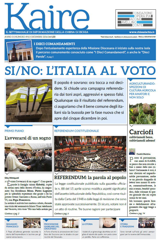 La prima pagina Kaire di sabato 3 dicembre 2016