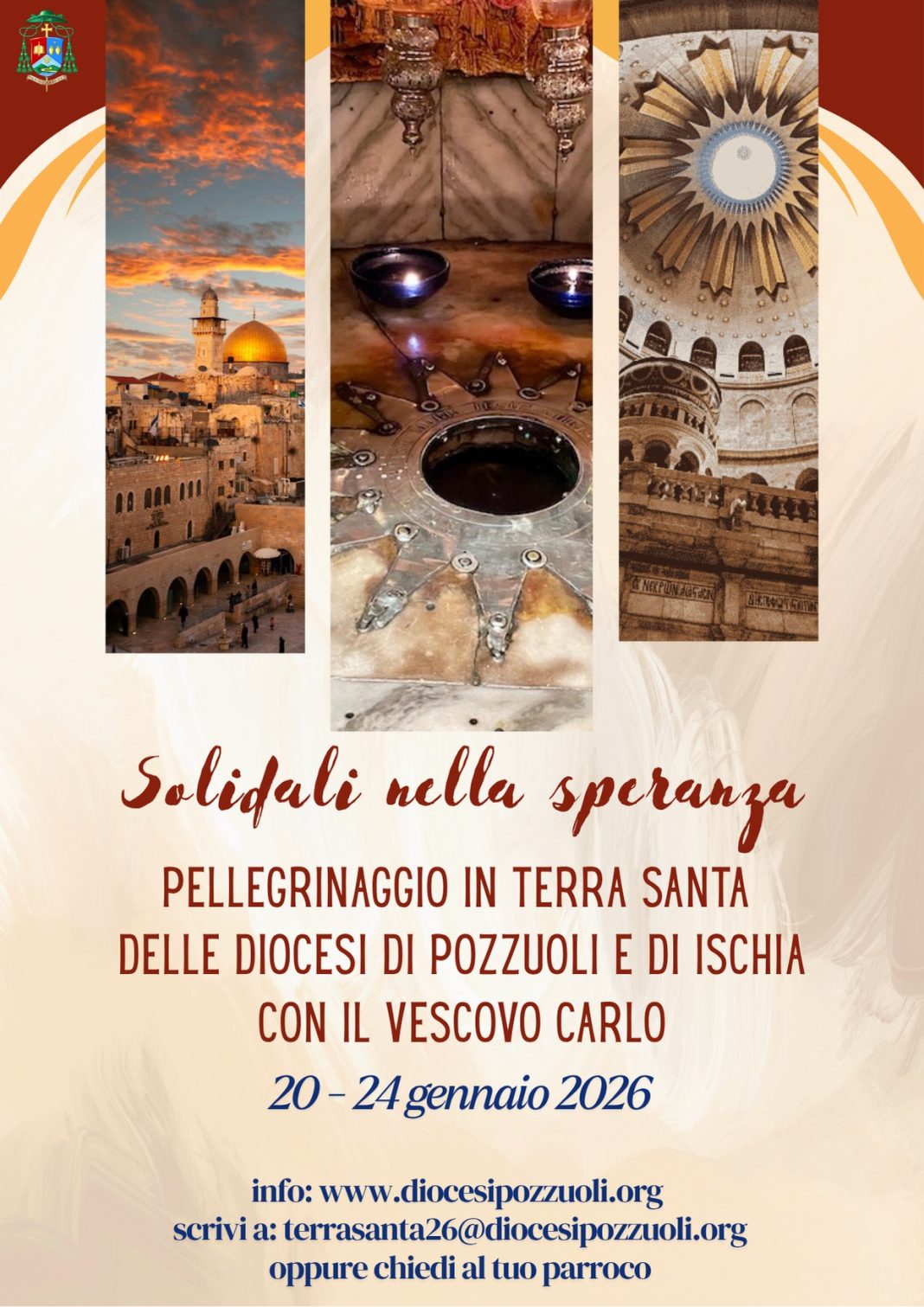 Le immagini della drammatica situazione in Terra Santa, giunte fino a noi in questi ultimi anni, e i ripetuti appelli del Santo Padre alla pace restano vivi nei nostri occhi e nei nostri cuori. In questo spirito desidero proporvi un pellegrinaggio di solidarietà e di speranza dal 20 al 24 gennaio 2026.